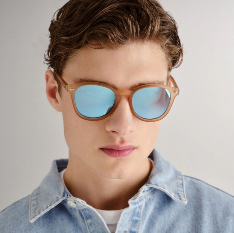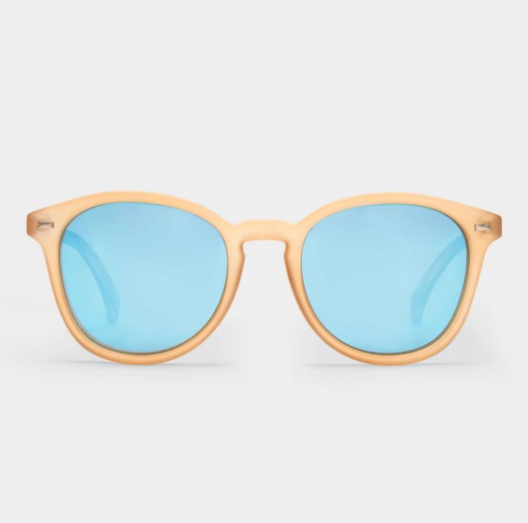 Clear Frame with Black Lense, Beige Frame with Blue Reflective Lense, Beige Frame with Pink Lense