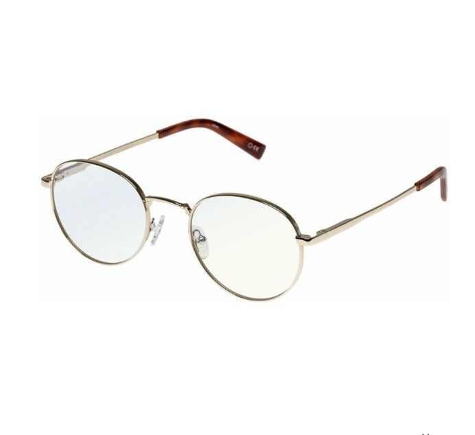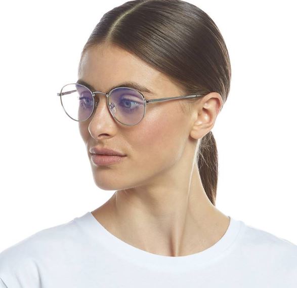 The Le Specs Lost Legacy glasses are fitted with small proportion blue light blocking lenses, made to help filter 30% of the blue light produced by digital devices such as computers and iPhones. The vintage inspired details and small sized lenses offer an ageless classic aesthetic.