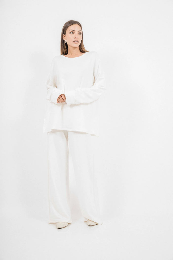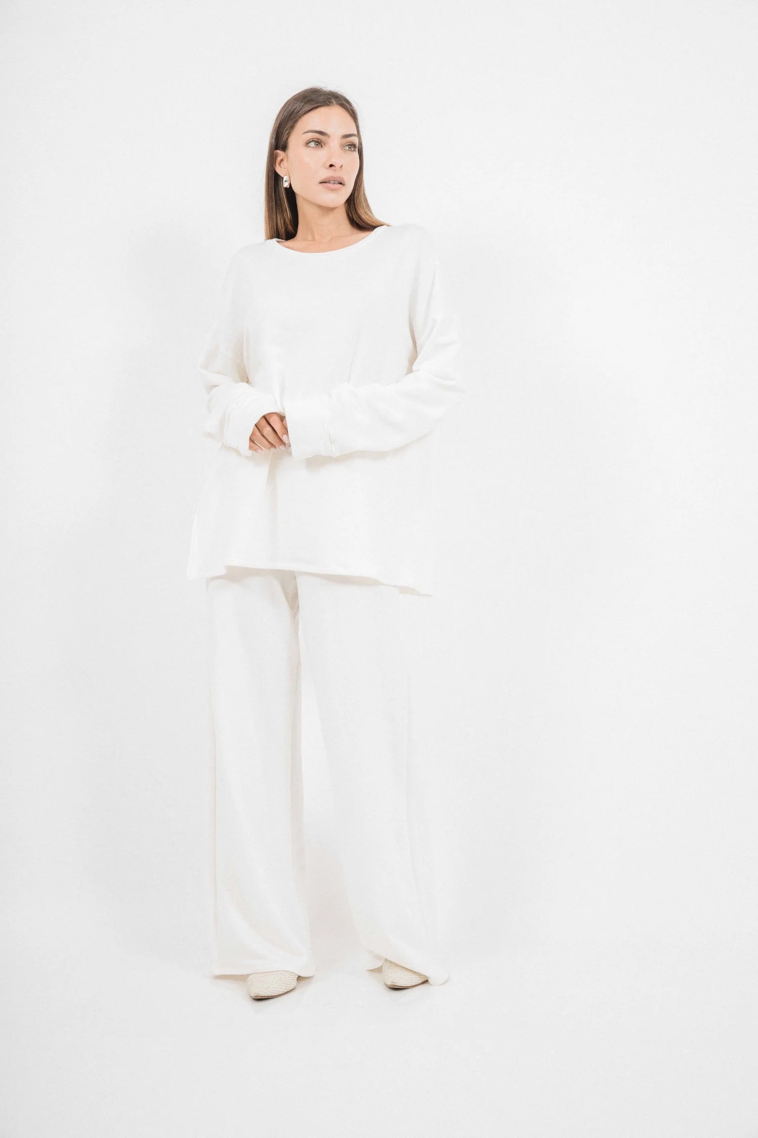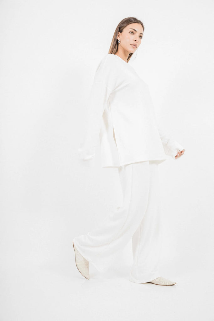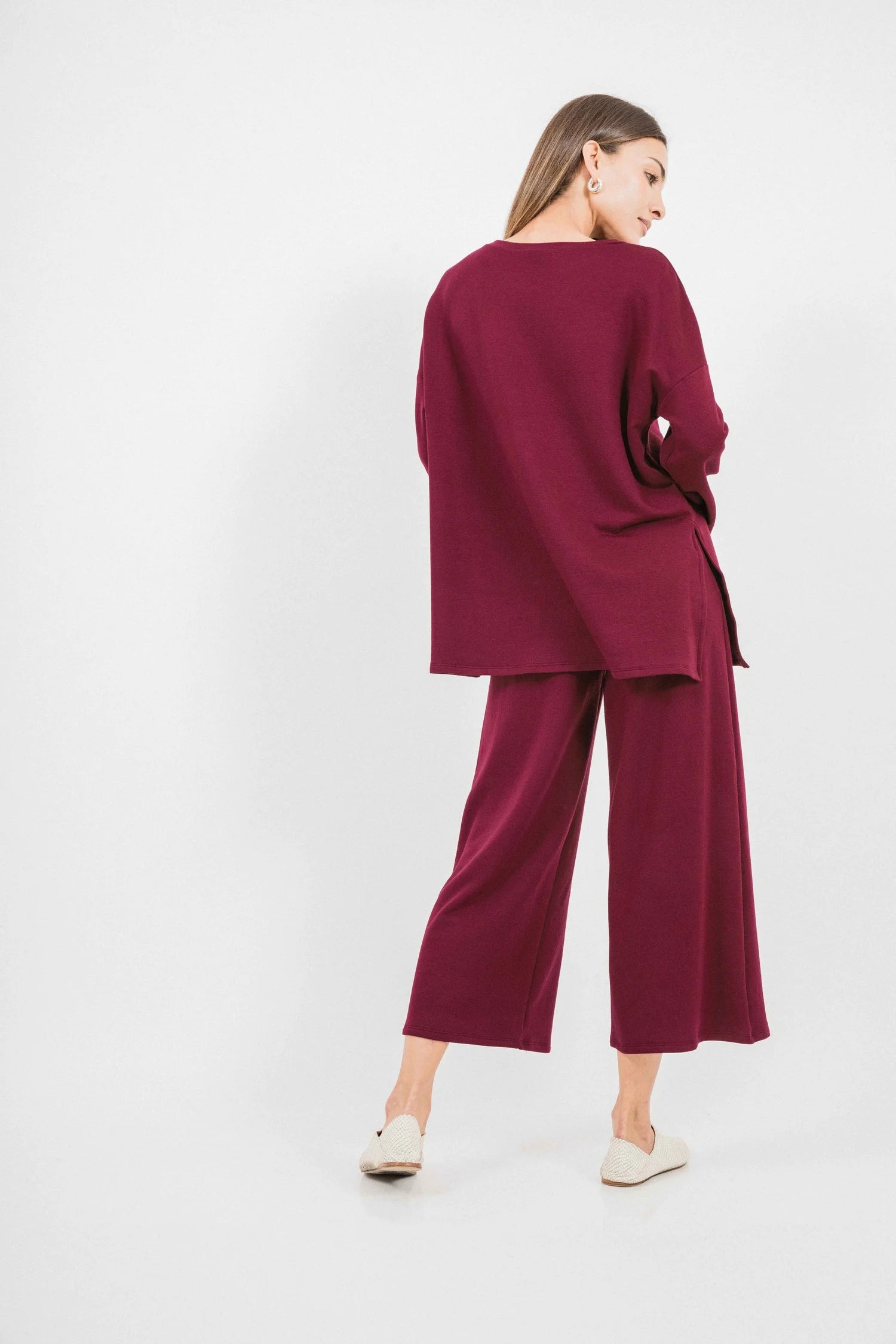 The Mira Tunic is a long sleeve top with one right side slit. There is a cuff detail at the sleeve. Fit is boxier and roomier so it is recommended to size down.