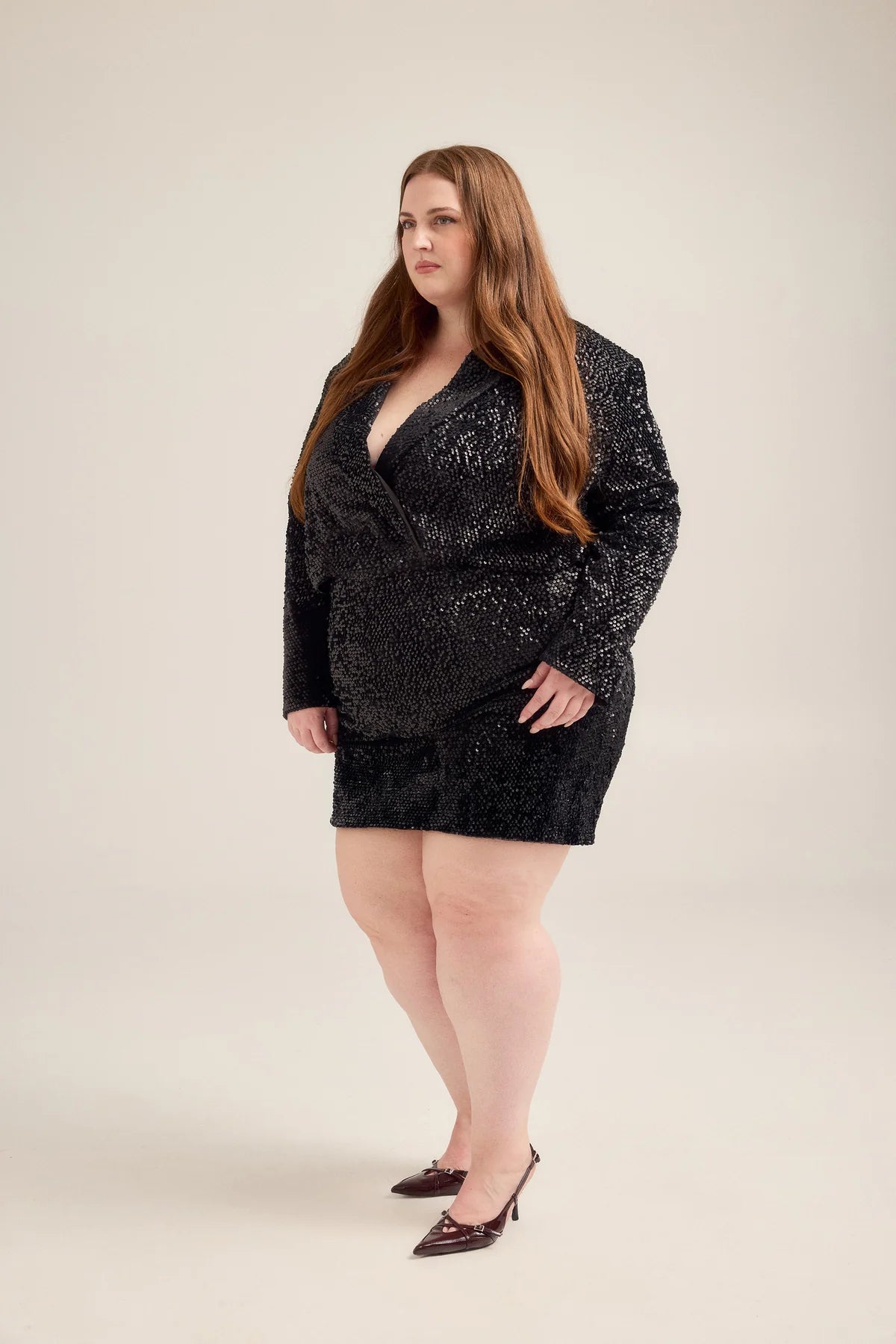 Short + Sweet, this sequin mini pairs perfectly back to the matching blazer or your favorite sweater for an effortless holiday and NYE look!