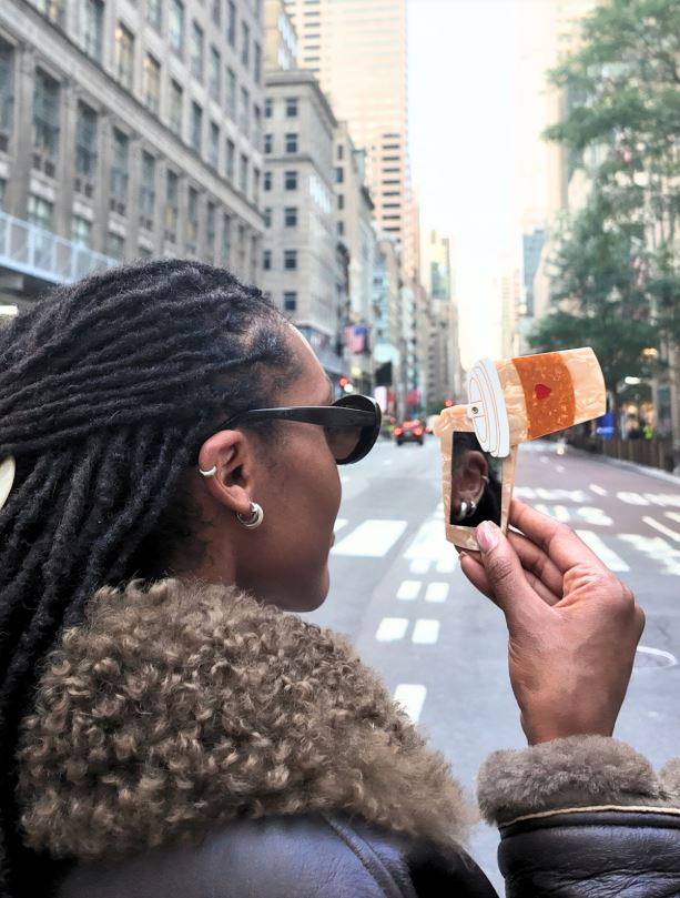 An original double-sided design, it has a sliding cover and is crafted from cellulose acetate, an eco-friendly biodegradable material made of recycled wood pulp.
