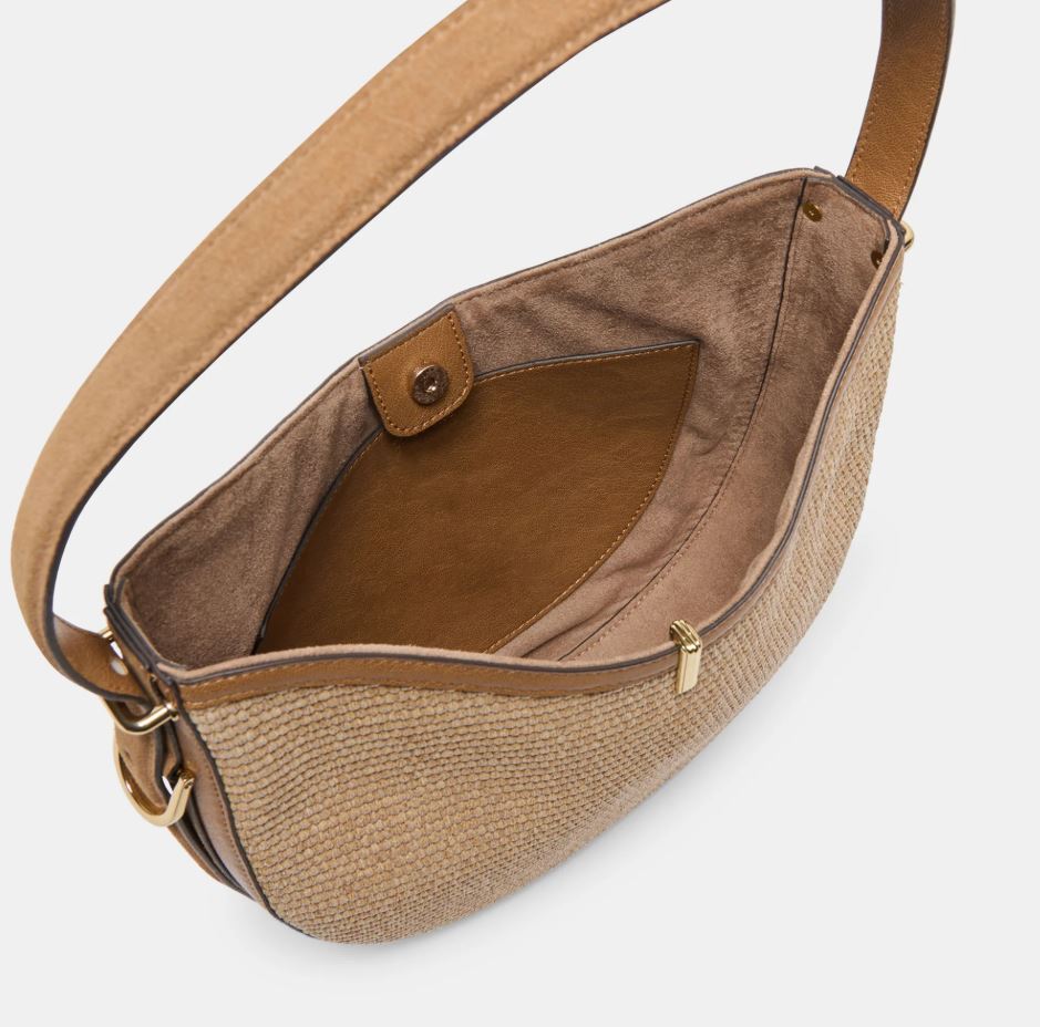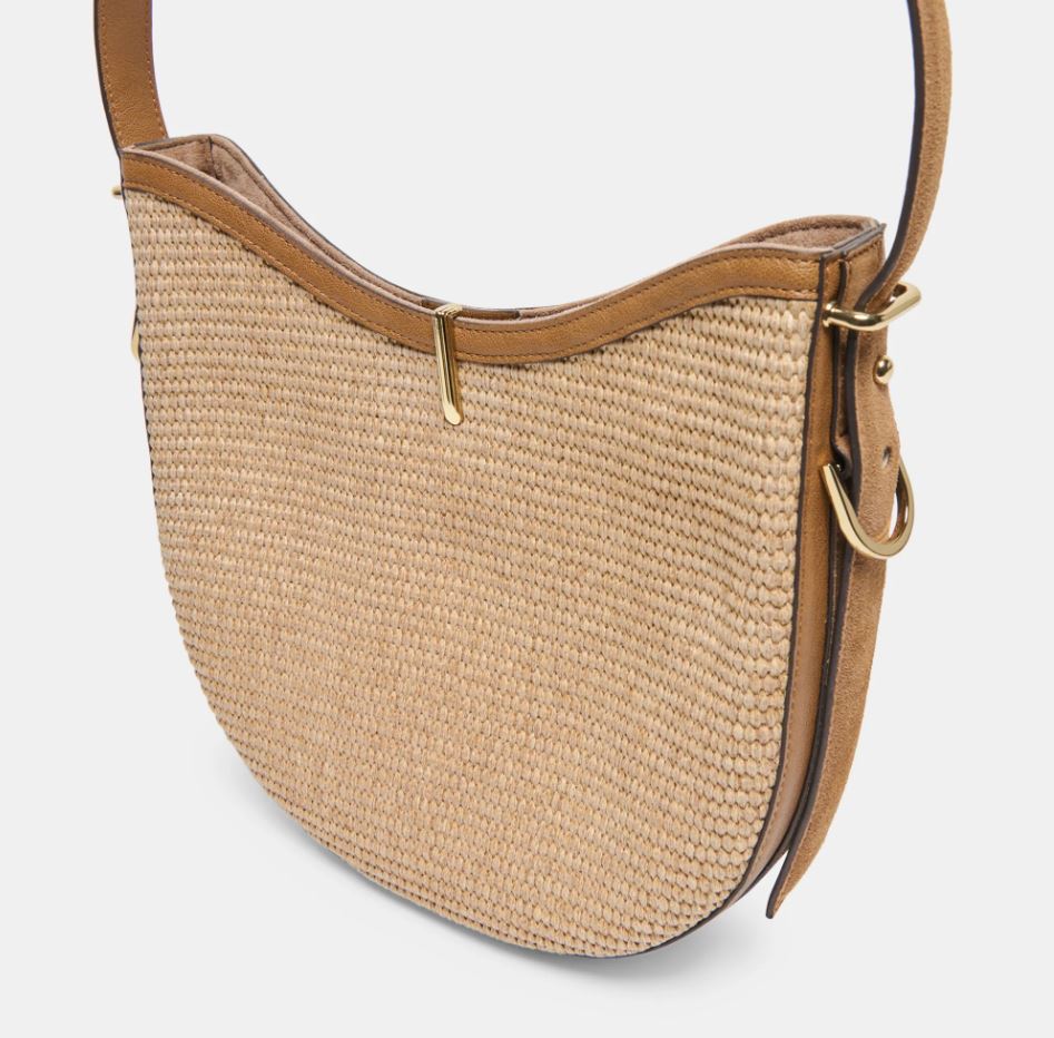 A great everyday bag in a neutral raffia combo color. This piece is just big enough to tote around your essentials without feeling overwhelming over your shoulder.