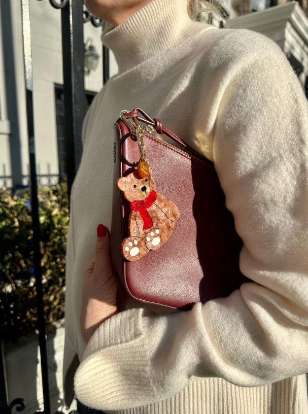 This adorable oversized bag charm will add some cuteness to your keys or tote! Carefully crafted from cellulose acetate - an eco-friendly, biodegradable material made from recycled wood pulp. This double-sided bag charm is hand-painted on both sides, and comes with a carabiner and split key ring.