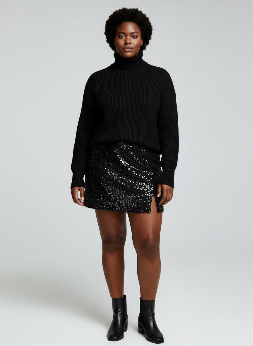 Short + Sweet, this sequin mini pairs perfectly back to the matching blazer or your favorite sweater for an effortless holiday and NYE look!