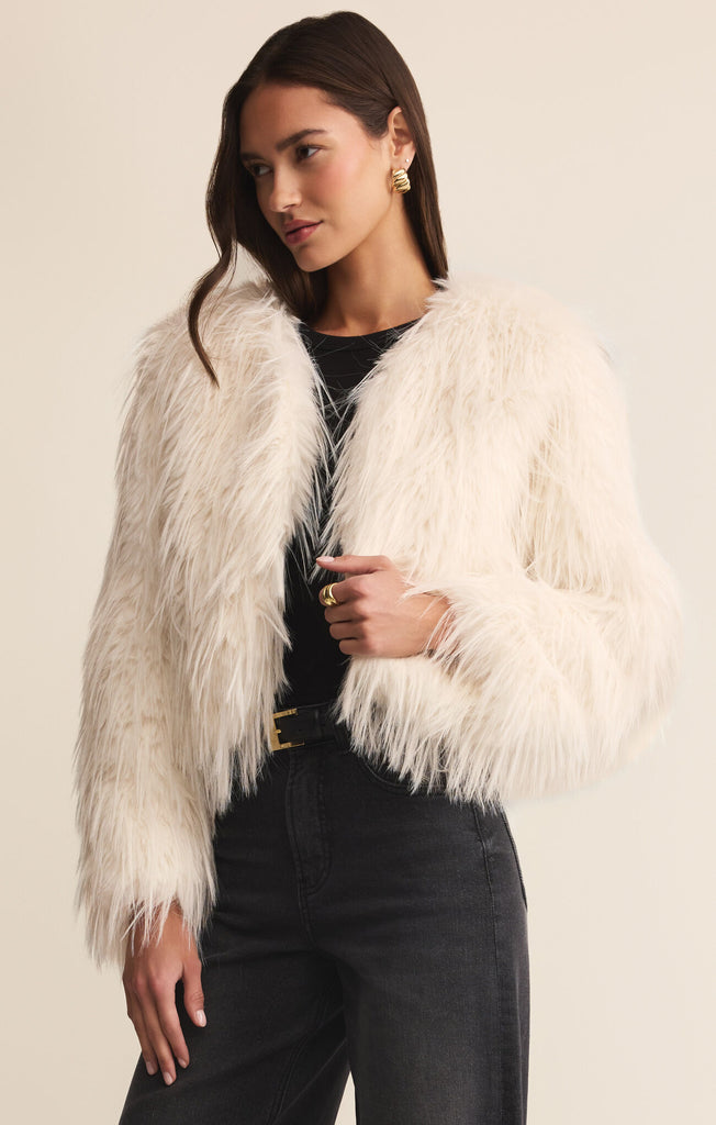 Made for cozy nights and city lights. This cropped faux fur jacket adds instant texture and warmth to your favorite holiday looks