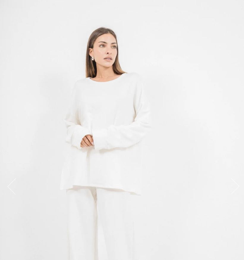 The Mira Tunic is a long sleeve top with one right side slit. There is a cuff detail at the sleeve. Fit is boxier and roomier so it is recommended to size down.