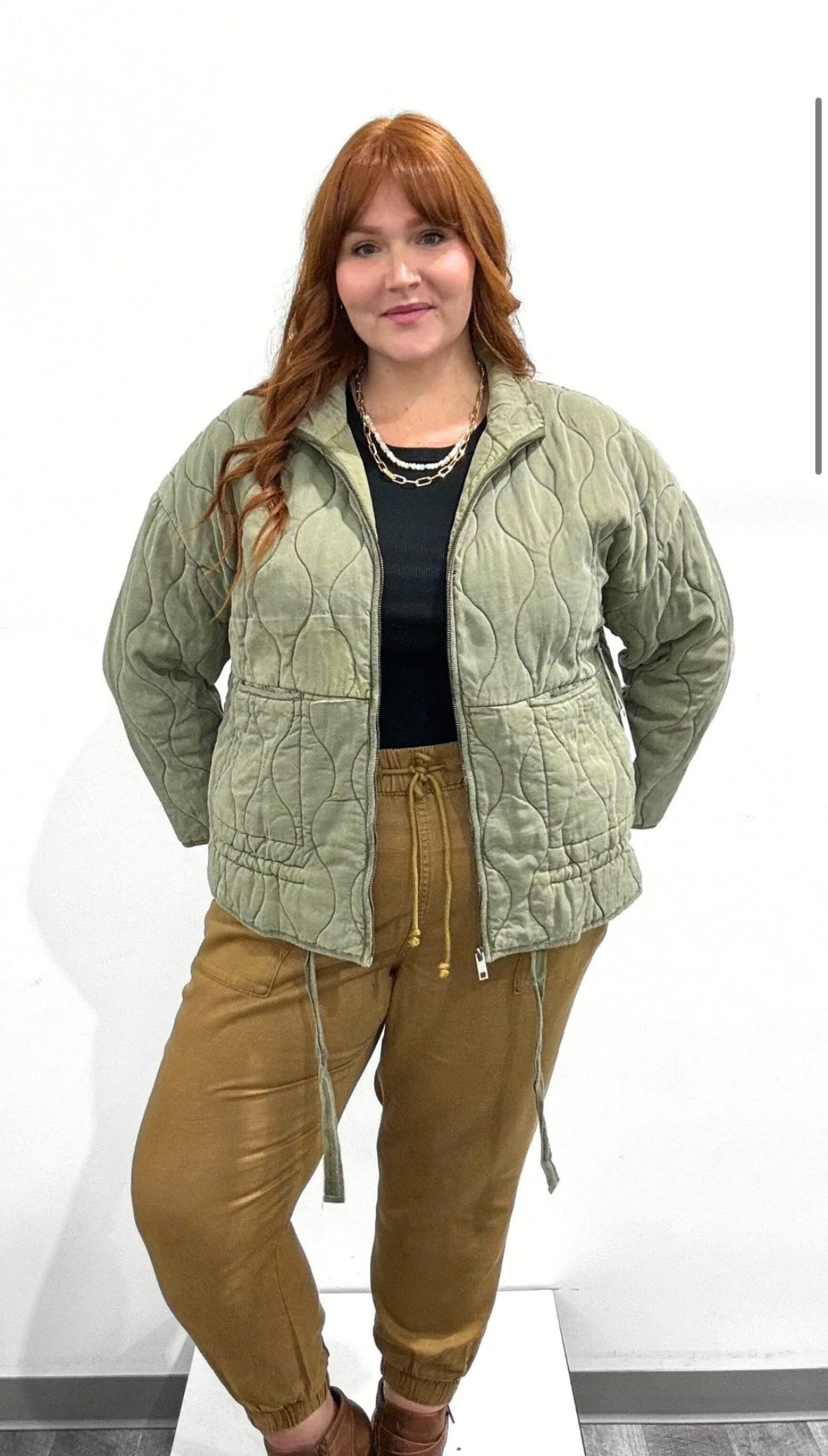This dreamy quilted jacket is SO SOFT. A gorgeous green hue