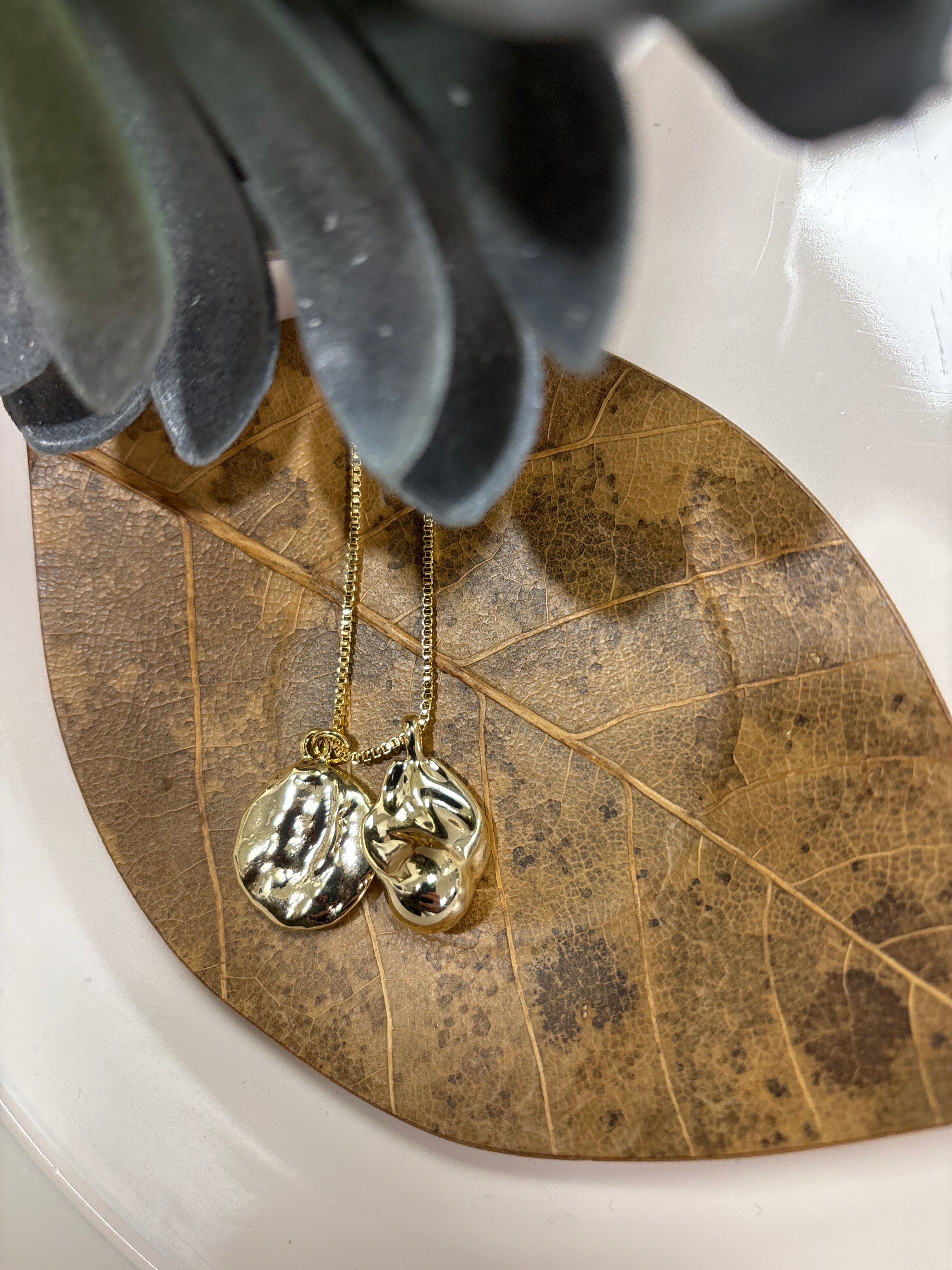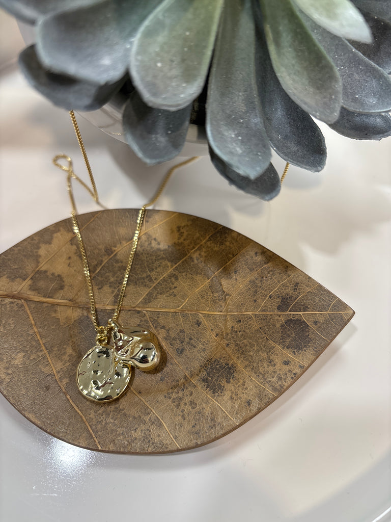 This fun long length chain has natural abstract elemental charms inspired by nature