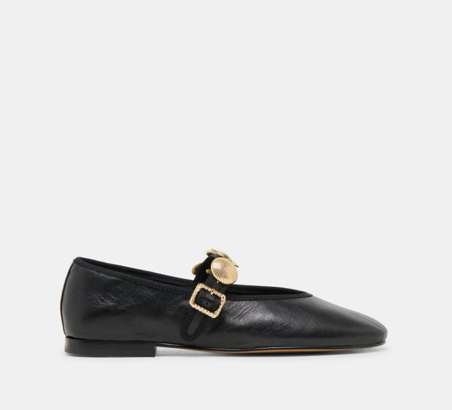 RELAN’s comfortable yet elevated design is made fresh by bold colorways and textures for fall. This sustainably-crafted, round-toe ballet flat features light-catching gold accents along the strap. She’s perfectly sophisticated for the office or casual weekends out.