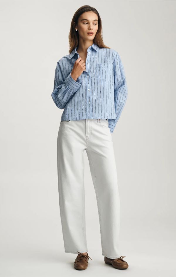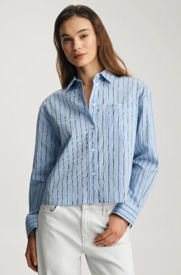 Weekend-ready style made simple. This easygoing button-up features a loose silhouette, chest pocket, and flattering cropped length. We love this paired back to denim shorts or white jeans for a laid back look, but you can easily take her to work with linen pants too!