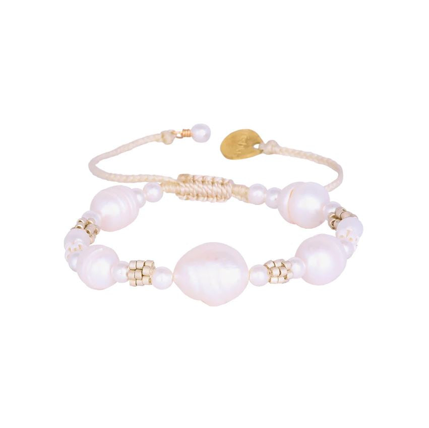 A fresh mix of Miyuki beads with natural and synthetic pearls, handwoven with thread