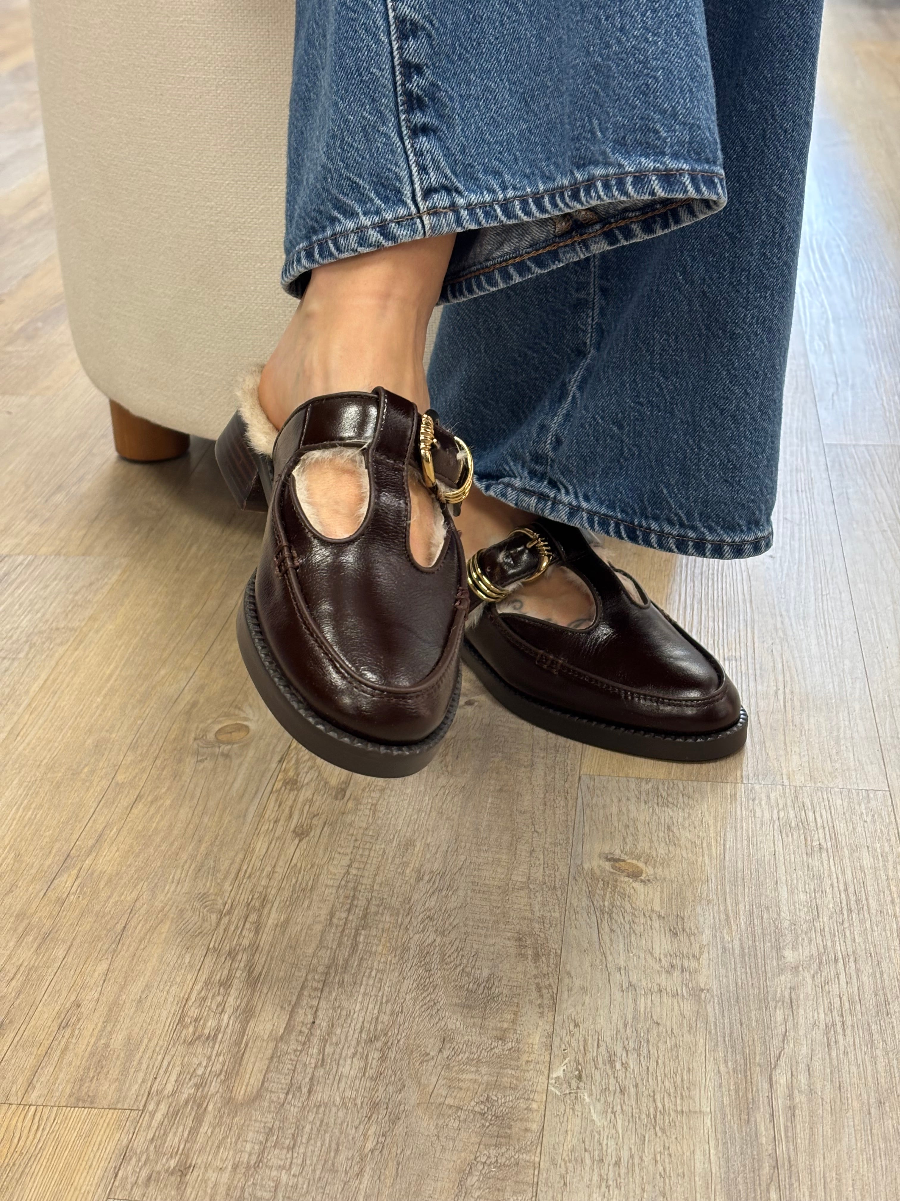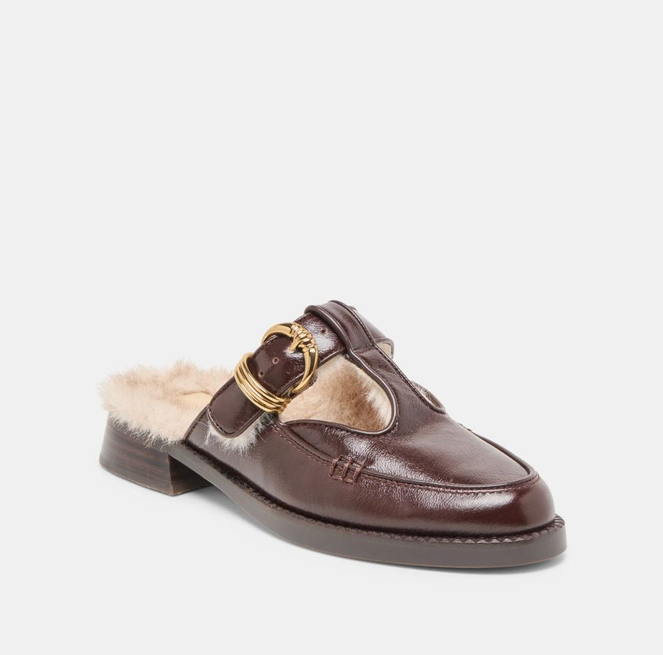 Consciously-crafted HARLAH PLUSH is a chic and playful addition to your cold weather wardrobe. This slip-on mary-jane loafer features a vintage-inspired t-strap, gold metal buckle, and shearling lining for an extra cozy look and feel.