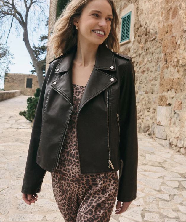 Soft, supple faux leather gives this moto jacket a clean, modern feel, with a zip front and functional zipper pockets. It’s a statement layer you’ll throw on over everything, from floaty dresses to your favorite denim.