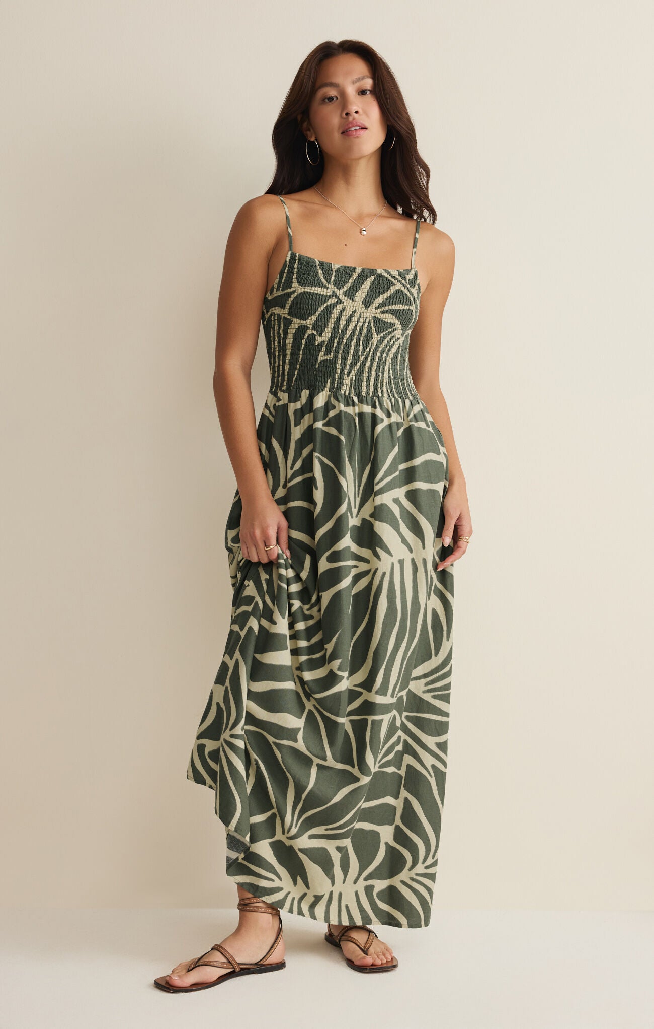 Made from a lightweight textured linen, we love this maxi dress for its unique palm print. Its smocked bodice and adjustable straps provide a great fit while a square neck adds a flattering touch.
