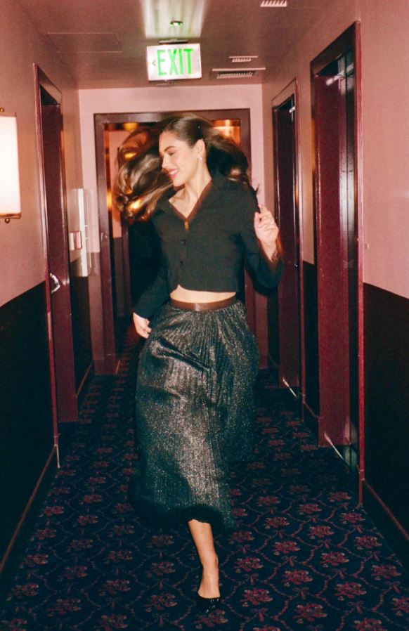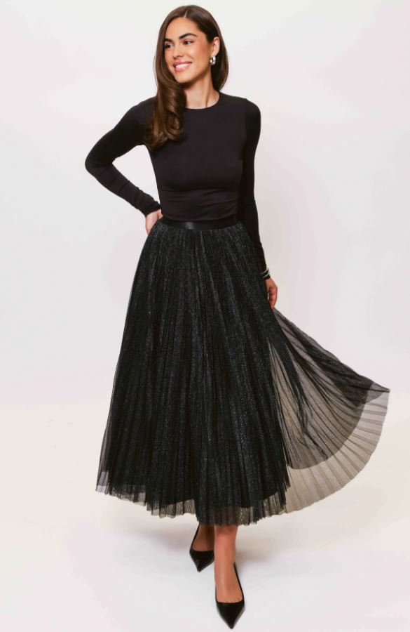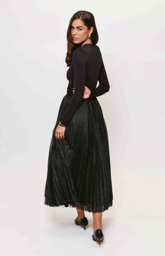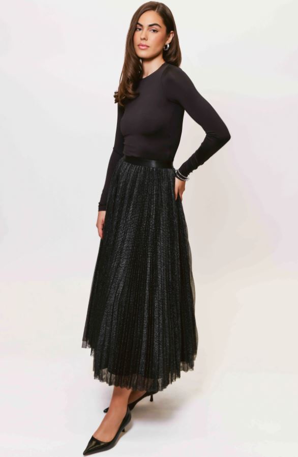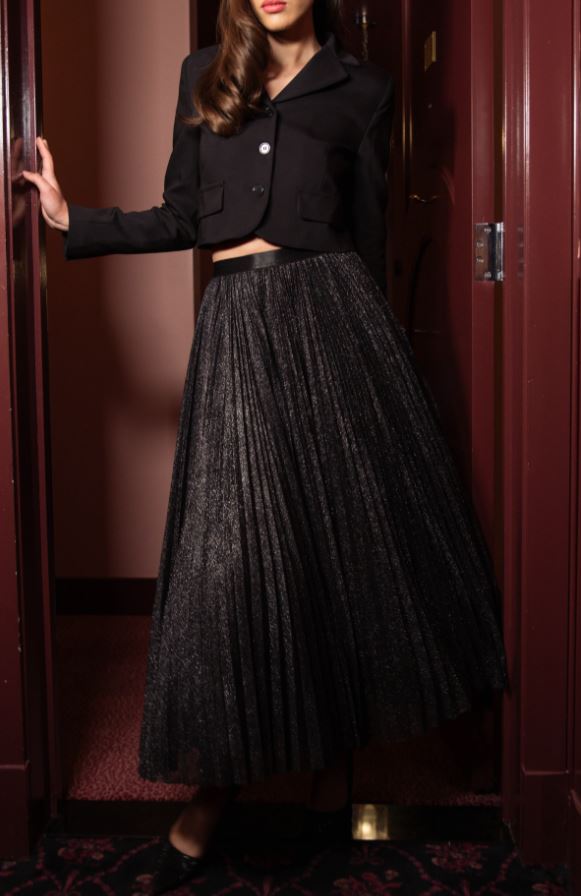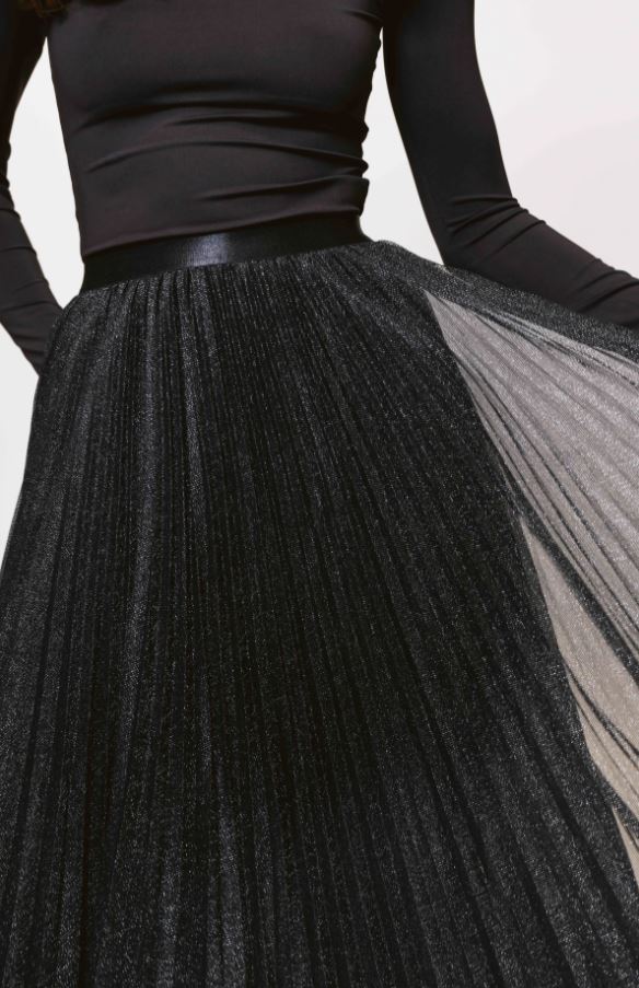 A beautiful midi skit, pleated, shimmering fabric, elastic waist