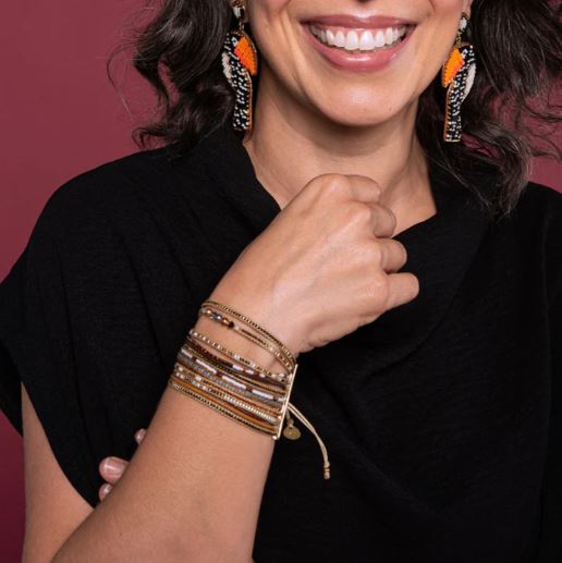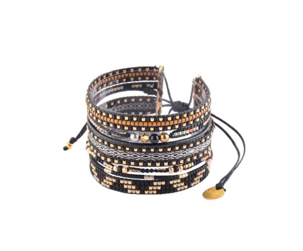 A playful and delicate bracelet featuring multiple strands of beading with an adjustable cord