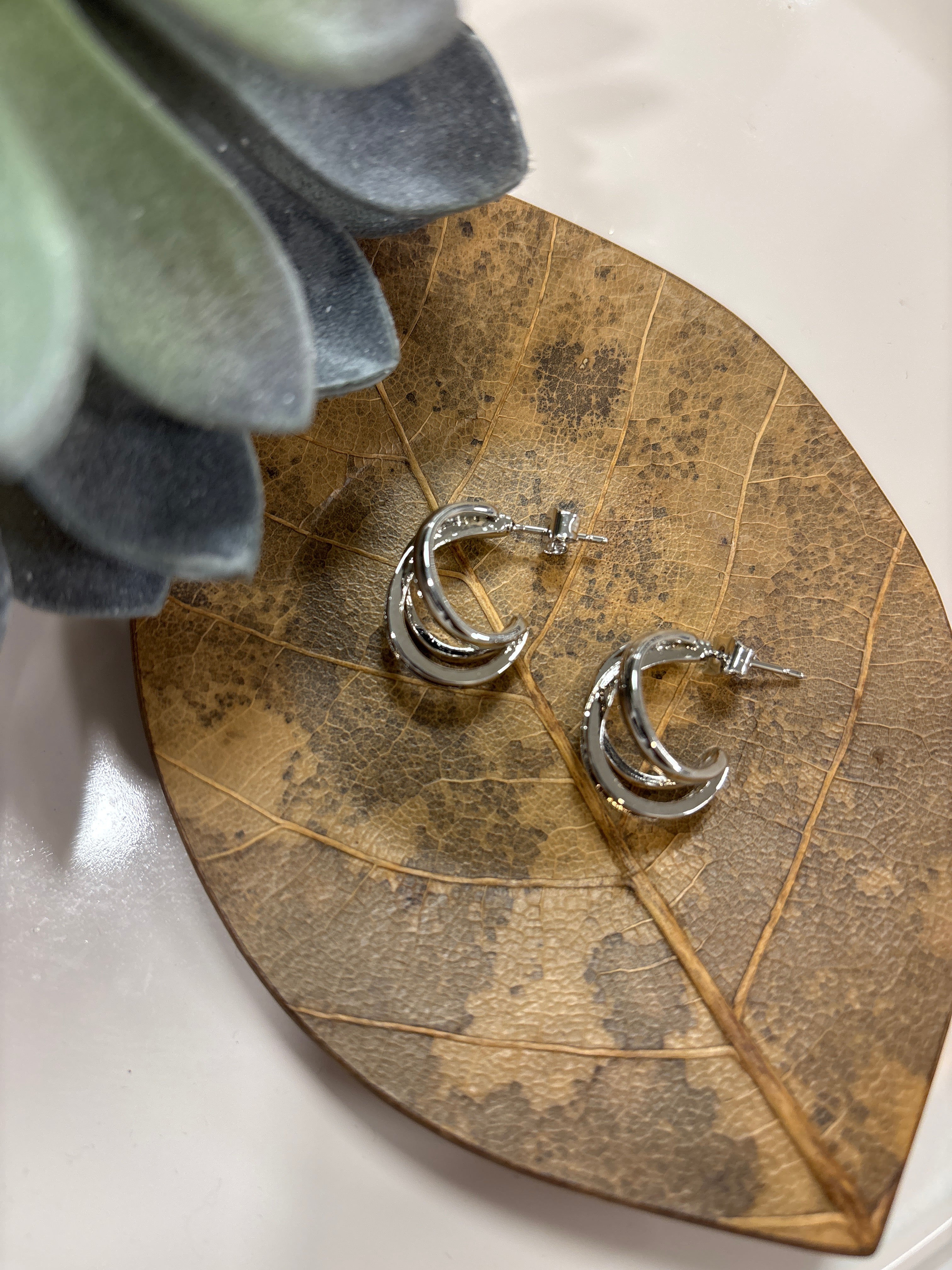 Three times the fun! These earrings feature rounded exterior loops with an inverted, slightly larger center loop.
