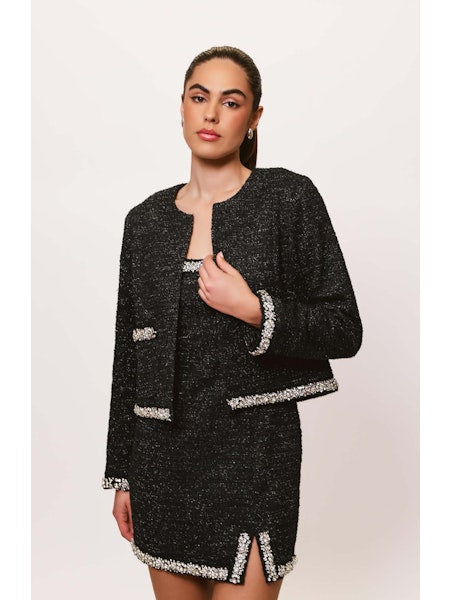 This dreamy jacket pairs perfectly back to the matching dress but we equally love it with a tank and jeans or paired to the shimmering skirt