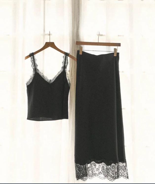 Intricate lace meets an easy, body-hugging fit for a look that feels classic yet new. Finished with light shirring and a fluttery hem, it’s a style made for days that call for comfort and a more elevated touch