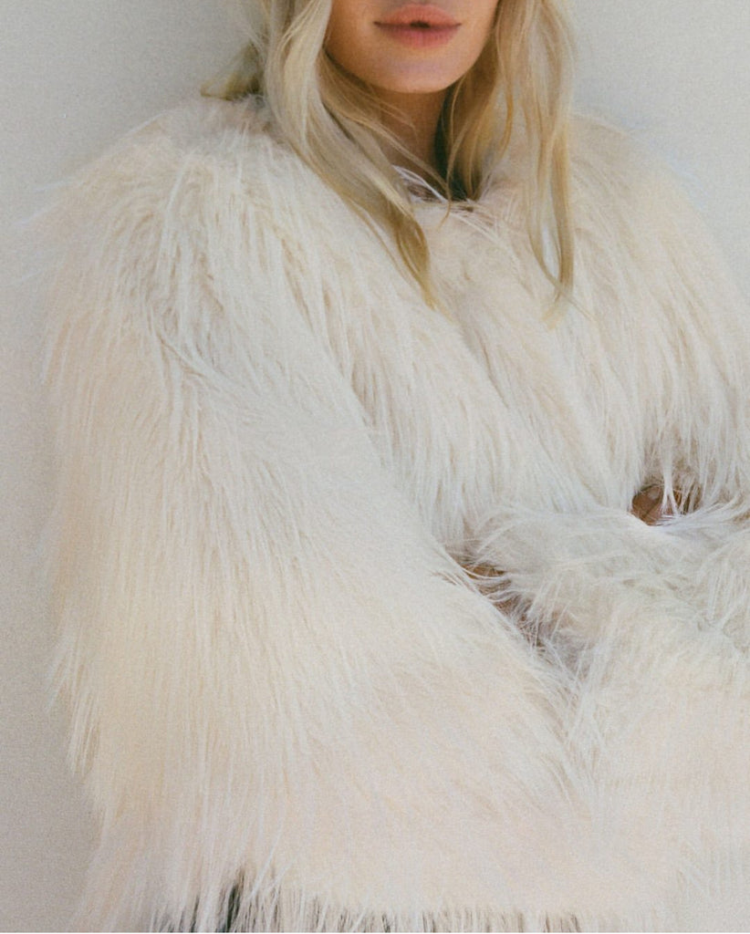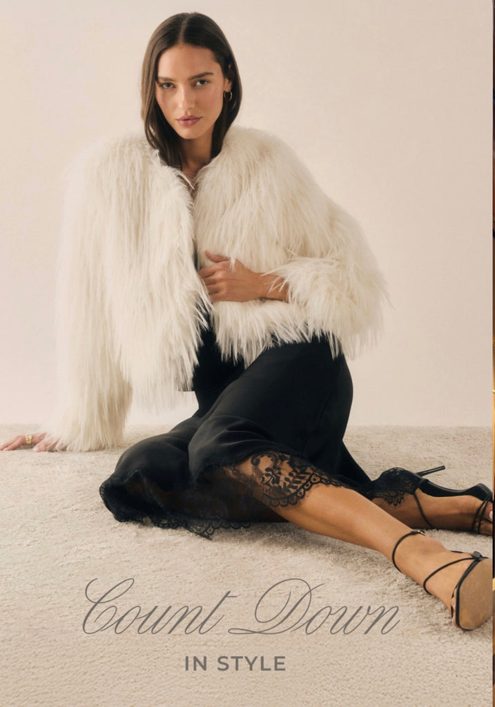 Made for cozy nights and city lights. This cropped faux fur jacket adds instant texture and warmth to your favorite holiday looks
