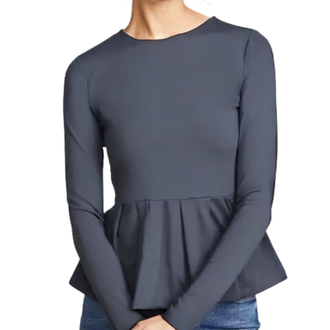 Smooth finishes and flattering fabrications make a perfect "work-to-weekend" piece. This slate blue top will be a go-to for a simply smart business look, and with laid-back denim for girls nights out all season long.